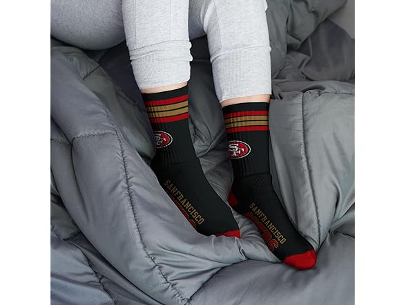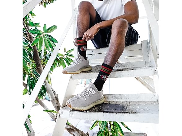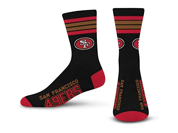 For Bare Feet NFL 4 Stripe Deuce Crew Sock, San Francisco 49ers, Medium