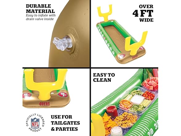 - THE ULTIMATE GAME-DAY ACCESSORY: Whether you're tailgating or hosting a game-day event, this inflatable buffet is the ultimate addition to your San Francisco 49ers fan gear collection, combining fun and functionality.
