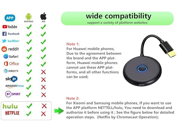 - 【Important! Friendly Tips 】This hdmi to iphone or Android adapter for tv is compatible with many applications, and Android devices are compatible with most applications.Video streaming and mirroring such as YouTube, Quick flix, IDMB, Home TV, ABC, NBC, FOX, Microsoft Office,google and many more.However, non-compatible subscription paid apps have "HDCP" video rights protection, such as Comcast TV, BT Sports,Neflx, Amazon Video, Sky Go, BT Sport, DIRECTV, HULU, Xfinity, Vudu and Movistar。