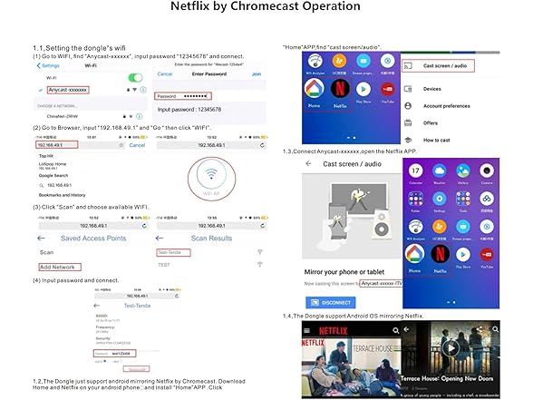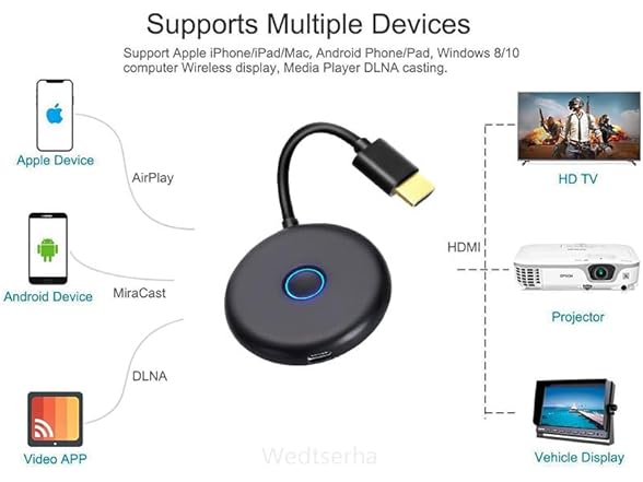*1080p HDMI to microsoft Wireless hdmi Display dongle Adapter projector- Stream Devices for TV, Cast Wireless Display 1080p Screen Mirroring project, Bluetooth Chromecast, Mirror Phone to Car, Android, with Microsoft and Google Chrome Compatibility; * Enjoy seamless streaming of your favorite movies or videos in stunning 1080P resolution with the advanced Chromecast 1080P device for TV. * Say goodbye to tangled wires and connect your devices effortlessly with the Microsoft wireless display adapter, providing a convenient wireless display solution. * Experience enhanced connectivity with the Bluetooth HDMI feature, enabling smooth screen mirroring between devices for a hassle-free audio and video transfer experience. * Transform your Android phone into a powerful streaming hub with the Miracast receiver, allowing you to effortlessly stream content to your TV or projector.