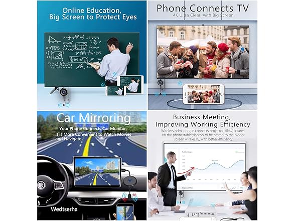 - 【Easy to install and connect]No need to download any application drivers, software, no need to connect,Simply connect to get the convenience of wireless streaming. Connect the port,Turn on the power,Find the "Screen Mirroring" function button to connect.