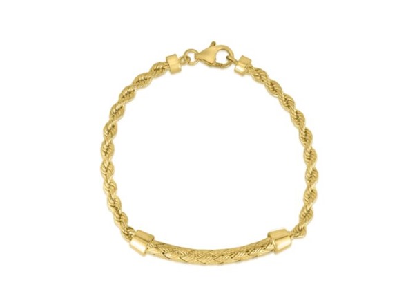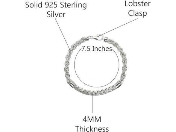 925 Sterling Silver 4MM Rope Chain With Braided Bar Bracelet 7.5 Inch