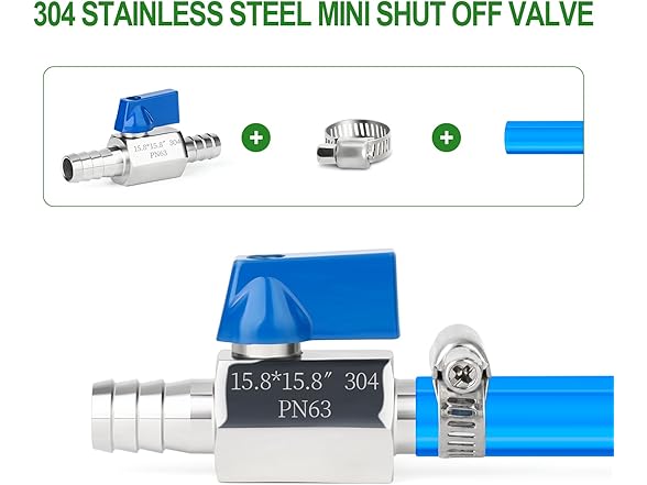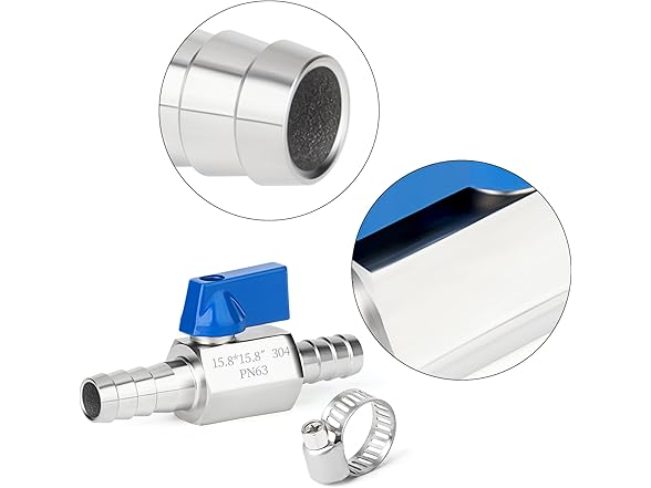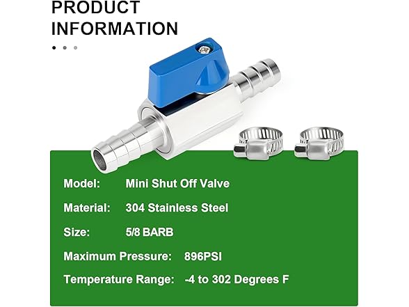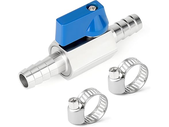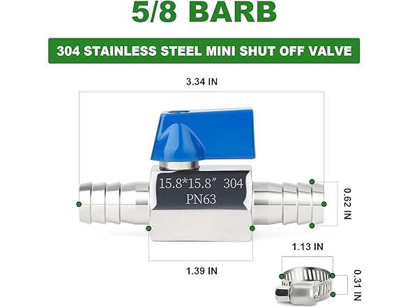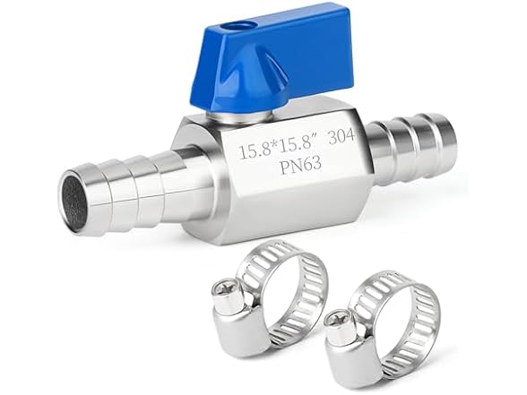 TAISHER 2PCS 304 Stainless Steel 5/8" Mini Ball Valve Shut Off Switch, 5/8" Hose Barb with 4PCS Hose Clamps