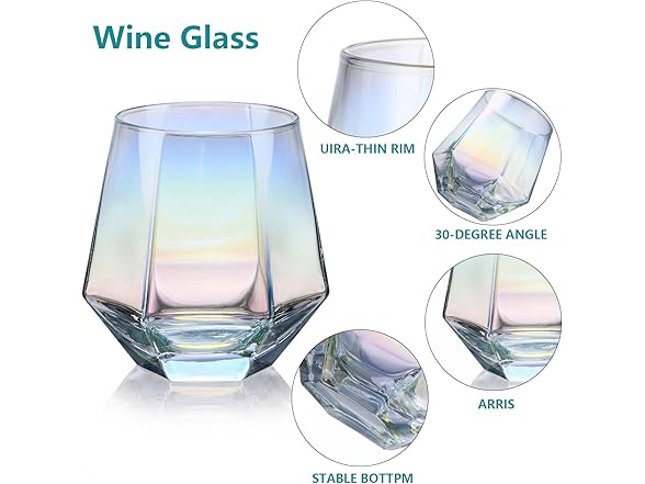 • PACKAGING SAFETY : The wine decanter set is packed with pearl cotton material, which can wrap the glasses well during delivery. The diamond iridescent decanter in an exquisite box will be a great surprise to your family members and friends