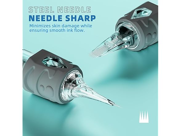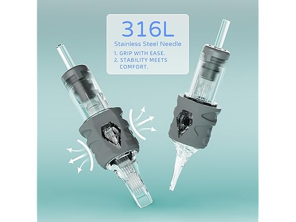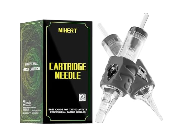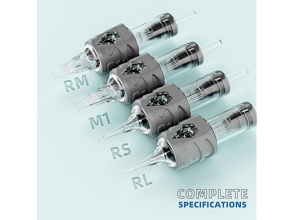 50Pcs Tattoo Cartridge Needles, Professional Assorted Kit (#12 Standard) - Mixed RL, RS, M1 & RM Sizes with Safety Membrane & Finger Ledge Grip for All Standard Rotary Tattoo Pen Machines
