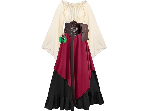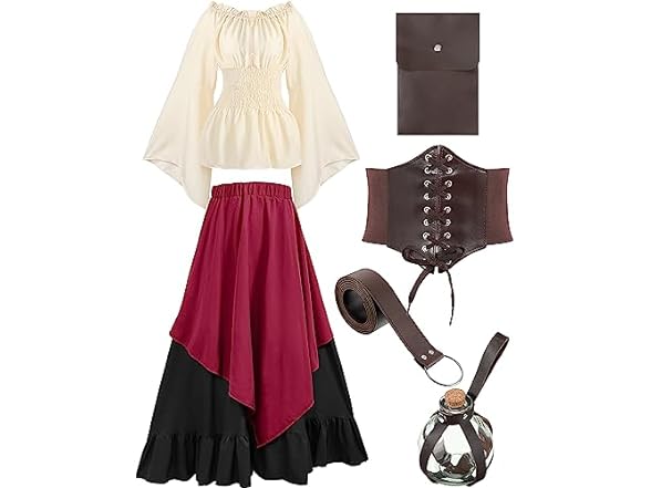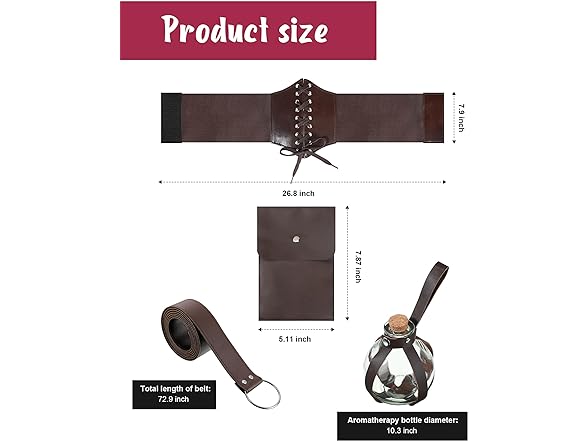 - What's Included in the Package: the package comes with 1 piece of potion bottle with cork, 1 piece of pouch, 1 piece of leather belt, and 1 piece of corset waist belt, and 1 piece of Victorian dress, you can wear them in a suit, or wear them separately