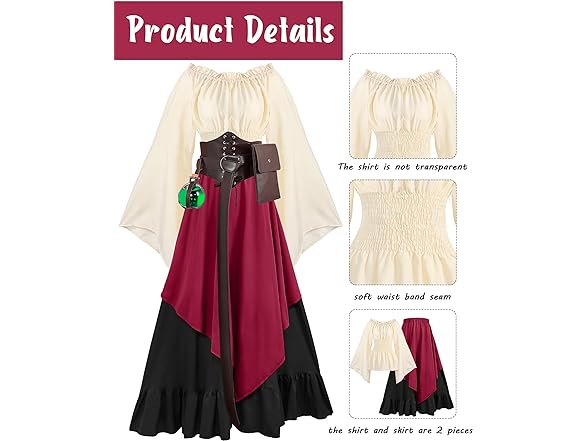 - Multiple Purpose of Usage: this medieval wench costume can be widely applied to renaissance theme parties, weddings, cosplay party, Halloween party, dancing party, farmers theme parties, performing arts, and more