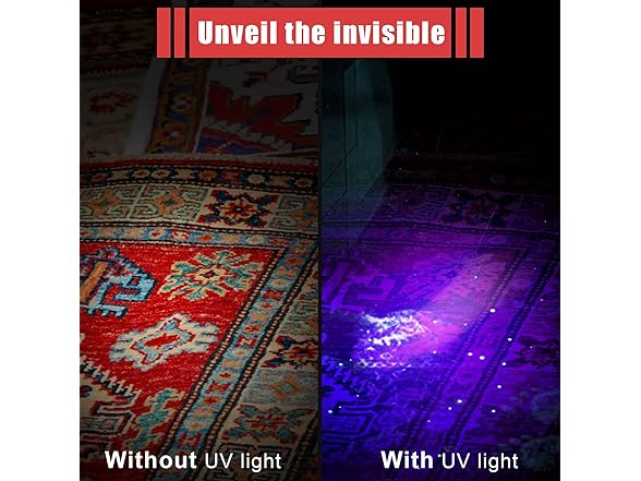- Multiple applications: the black pen lights are appropriate for hotel room inspections, revealing unknown human and pet fluid stains, contamination places that can't be detected by the naked eye; The UV black light flashlight can also be applied for authenticating currency, official ID cards and so on