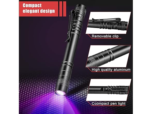- Easy to use and carry: it is easy to use power switch to turn on and off the mini black light flashlight, which allows for effortless one-handed operation and delivery; With removable pocket clip on the pen flashlight, it can be easily attached to your belt, bag, shirt or pants pocket