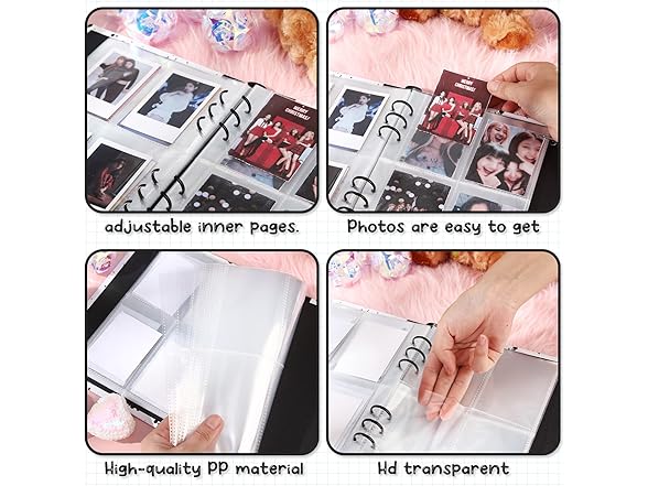 - Delicate Cover Design: the photocard binder cover is designed with an exclusive transparent card sleeve, so you can put your favorite Kpop photos inside and decorate it with kawaii Korean stickers