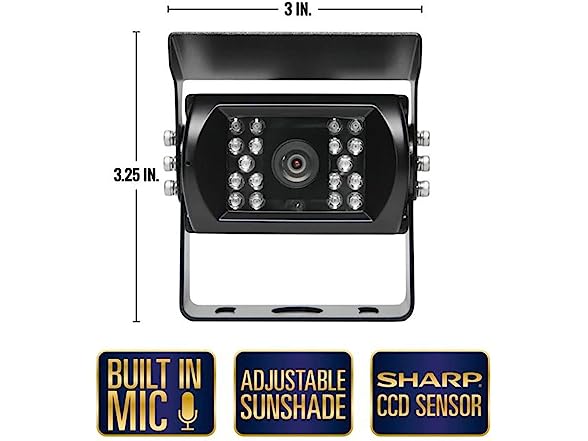 Our flagship backup camera system has been keeping our customers safe for over a decade. The rear camera system includes a crisp 7 inch LED color monitor with optional distance grid lines, normal/mirror image capability, and a built-in speaker. The RVS-770613-NM also includes a Sharp CCD backup camera with 18 infra-reds allowing for 50 feet of night vision, an ultra-wide 130 degree viewing angle, and a built-in mic. This tough backup camera is completely waterproof with an IP69K rating, and comes with a 20Gs vibration rating, and a 100Gs shock rating, which is the highest in the industry. The 3 port power harness allows for the connection of two additional cameras.