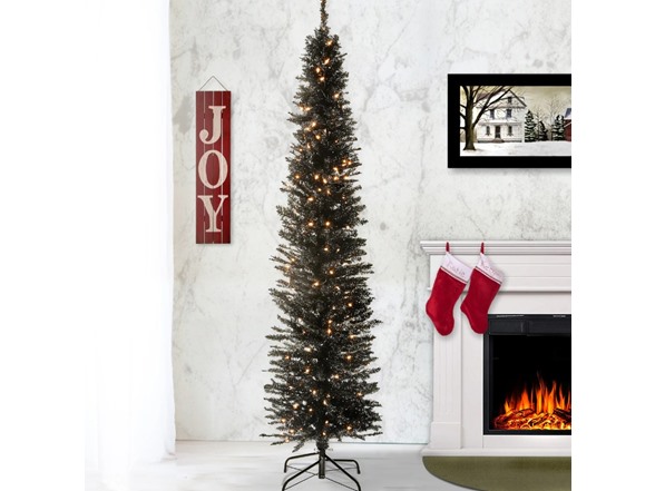 National Tree Company 7' Black Tinsel Tree with Stand & 210 Clear Lights UL