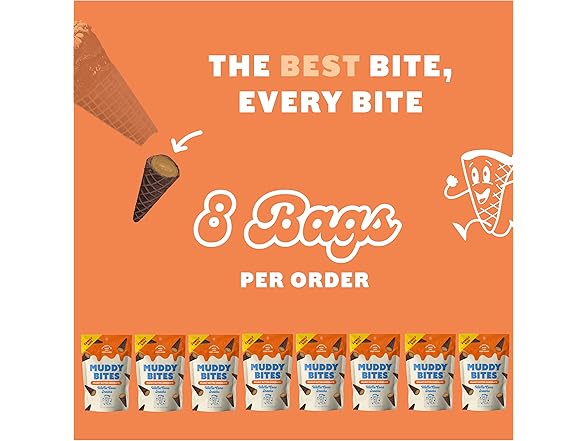- A NOSTALGIC SNACK: Do you remember growing up eating sundae cones and getting to the bottom and savoring that last bite of the cone filled with chocolatey perfection? That’s exactly what Muddy Bites are: the first ever bite-sized, crunchy waffle cone snack.