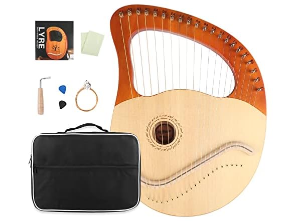 - 【Accessories Package】1 * 21 String Lyre Harp, 1 * Carry Bag, 1 * Tuning Wrench, 1 * Cleaning Cloth, 1 * Extra Set of Strings, 1 * Users' Manual , 2 * Picks.
