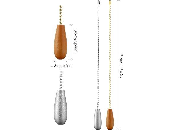 - Large quantity: you will get 8 pieces wooden pull chain extensions (13.8 inch/ 35 cm) in walnut color, white,silver and wood color, easy to place in different positions, providing different visual effect to you