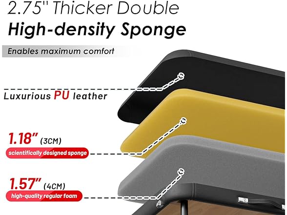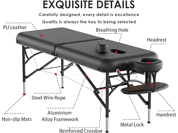 - ❶【ULTIMATE CUSHIONING COMFORT】Our professional massage table features 2.76" thicker high density breathable foam cushioning, the tabletop is composed of a high-density, multi-layer foam padding and the massage table cover draped in a luxurious PU leather, durable, soft, and easy to clean, but spa bed has no offensive smell like other synthetic materials.