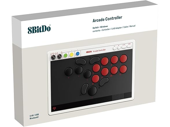 8BitDo All-Button Arcade Controller for Switch/Switch 2 & Windows – Bluetooth, 2.4G, Wired Connectivity, Low-profile Mechanical Switches, 4 Programmable Buttons, Hot-swappable PCB