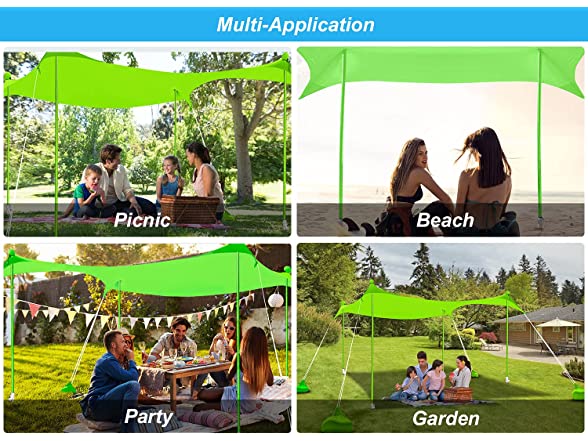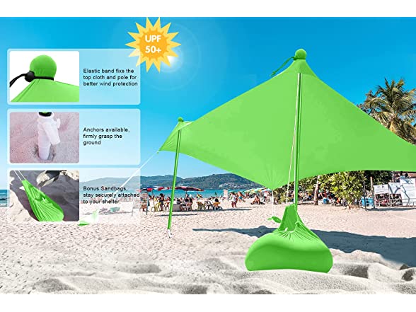 - EASY SETUP: Each beach tent sun shelter sets up easily and comes with stability poles and anchors that let you use it over sandy beaches, thick grassy areas, or even in rocky camping spots.