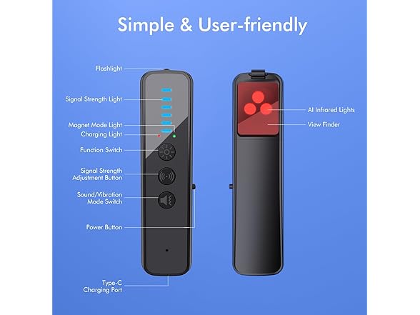 Upgraded Hidden Camera Detector - AI-Powered Anti-Spy Device, GPS Tracker & Bug Detector, Portable RF Signal Scanner for Hotels, Travel, Home & Office (Black)