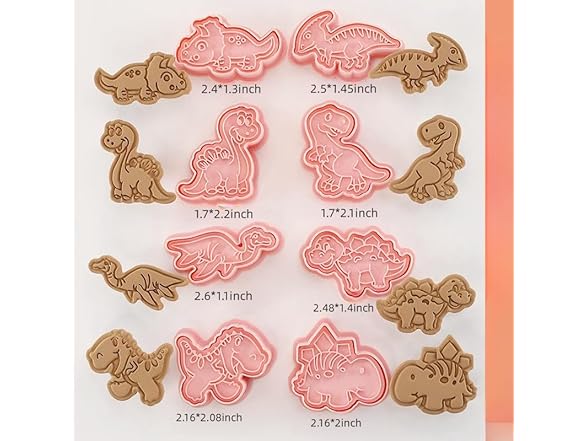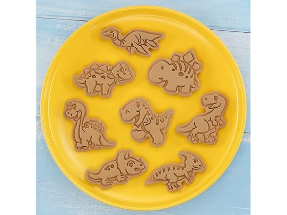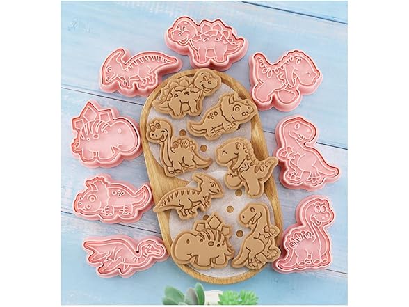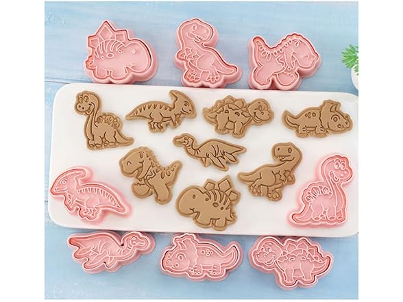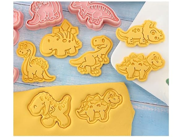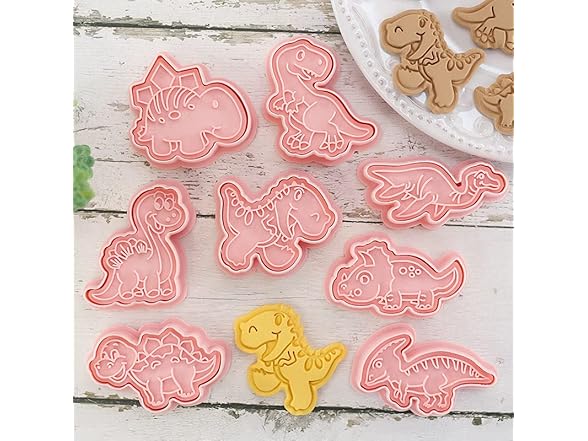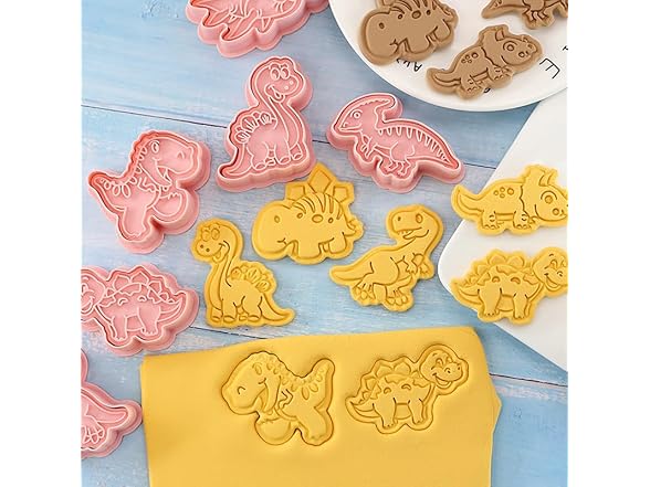 Dinosaur Cookie Cutter Set with Plunger Stamp, 8-Piece 3D Dinosaur Embossing Cutter, DIY for Cookie Fudge Cheese Baking