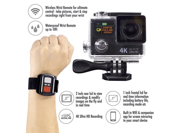 Ultra HD camera with a waterproof housing and WiFi comes with 20 different accessories for putting on a helmet, handlebars, or another spot