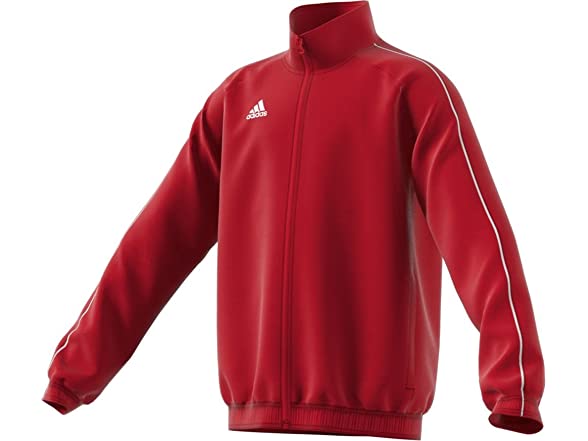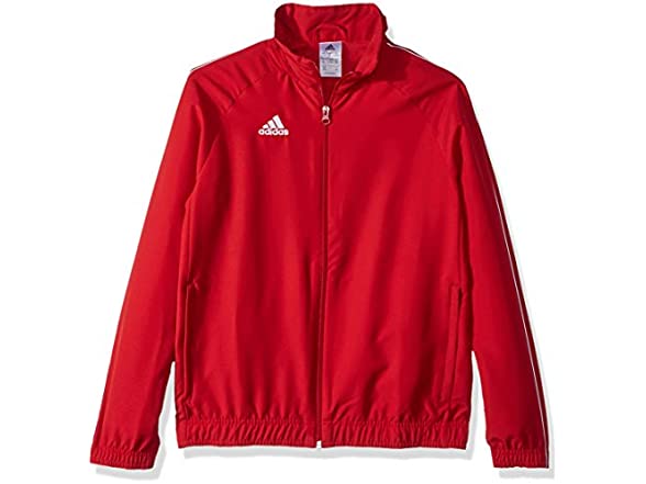 - (1) adidas Juniors' Soccer Core 18 Presentation Jacket Unisex (XXS, Red/White) Stand-Up Collar, Front Storage Pockets, Regular Fit (Boys & Girls)