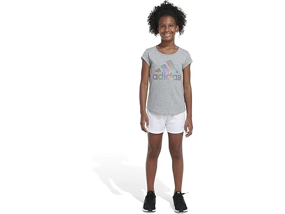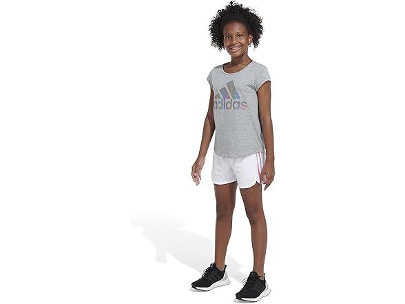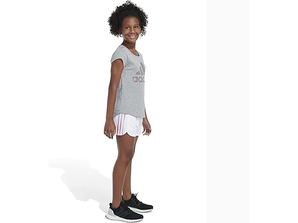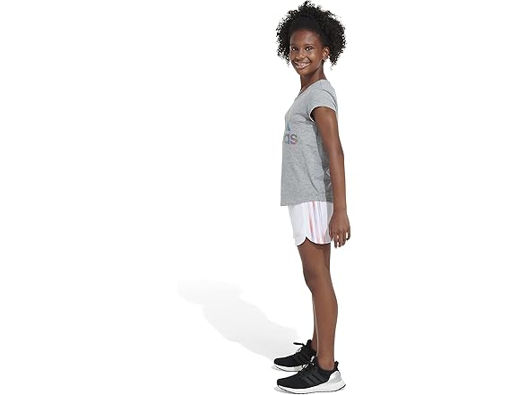 adidas Girls' AEROREADY® Elastic Waistband Gradient 3-Stripes Pacer Lined Mesh Shorts, White, XL (16)