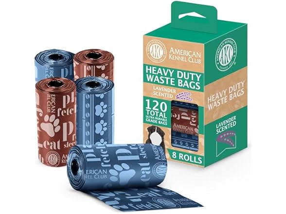 Introducing the American Kennel Club Waste Bags, the convenient and reliable solution for managing your pet waste disposal needs. Available in two delightful scent options, Mountain Scent and Lavender Scent, these waste bags offer a pleasant and refreshing fragrance to accompany your cleanup routine. Each pack contains 8 rolls, totaling 120 waste bags, ensuring you have an ample supply to last through many pet waste cleanup sessions. Crafted from durable and leak-proof materials, these waste bags provide a strong and reliable option for handling pet waste of all sizes. With convenient tear-off perforations and a sturdy design, they are easy to use, allowing for quick and efficient cleanup. Plus, their compact and portable nature makes them perfect for on-the-go use during walks, hikes, or any outdoor adventures with your furry friend. Not only are these waste bags practical and convenient, but they are also environmentally friendly. Made from biodegradable materials, they help reduce environmental impact and promote sustainability, allowing you to clean up after your pet with confidence while making a positive contribution to the planet. Choose the American Kennel Club Waste Bags for a hassle-free and eco-friendly solution to your pet waste disposal needs.