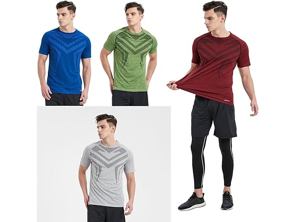 - UNIQUE DESIGN - Fashion allover printed or embossed design of this T-shirt not only gives you a stylish athletic look, but also is used for high visibility in low light to ensure safety due to the color contrast.The lines are designed according to the smooth movement, which enhances comfort during exercise! 3D-fitting and flat seams and tailored form -- made for sports-specific movement and their highest power in sport. The very low weight makes the shirt your favorite workout friend.