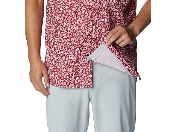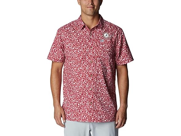 Columbia Men's Collegiate Super Slack Tide Shirt, ALA-Red Velvet Gameday Print, Small