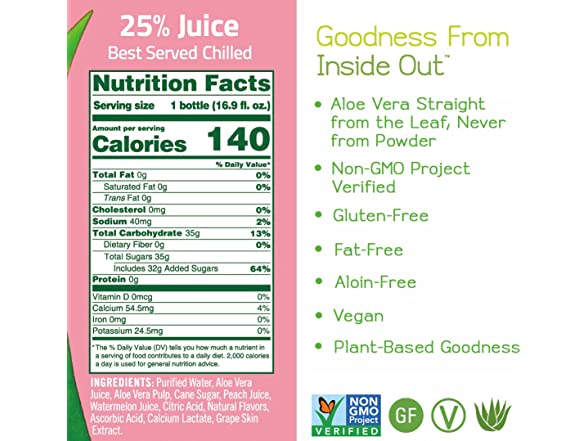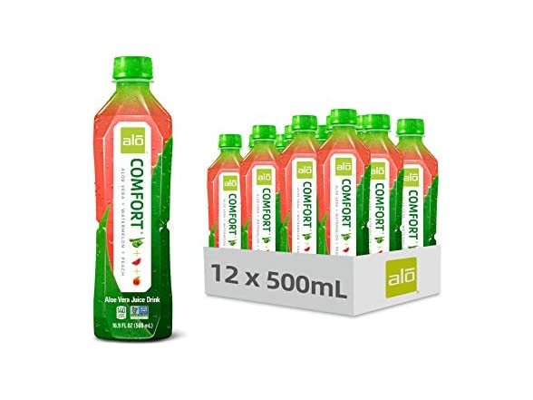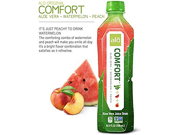 Alo Comfort Watermelon and Peach Aloe Vera Juice Drink, 16.9 Fluid Ounce - 12 per case.