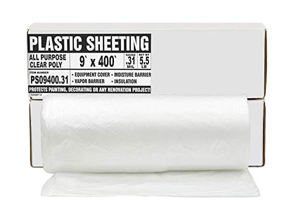 Aluf Plastics 7.8 Micron Clear All Purpose Vapor and Moisture Barrier Sheet Tarp/Drop Cloth - 9' x 400' - for Painting, Furniture, Carpet, Contractor, & Construction