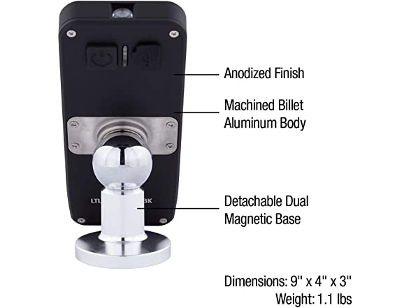 Luna Tech, ALUMINATOR Pocket Light, Rechargeable, Waterproof, Detachable Dual Magnetic Base, Machined Billet Aluminum, Includes Micro USB & Adapter