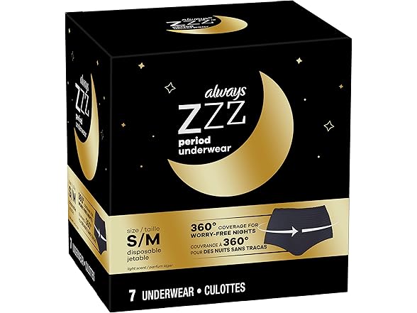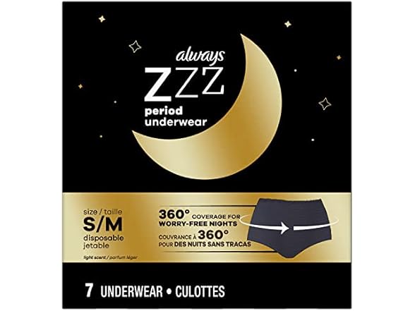 Always ZZZ Overnight Disposable Period Underwear for Women Size S/M, 360 Degrees Coverage, 7 Count