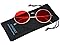 ALWAYSUV Round Small Flat Sunglasses Circle Metal Vintage 70's Hippie Glasses (Red)