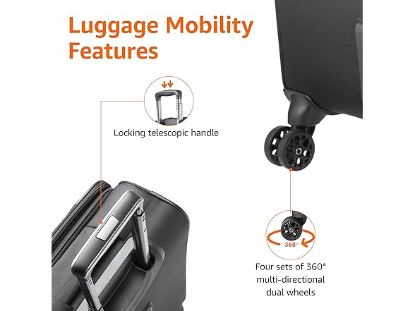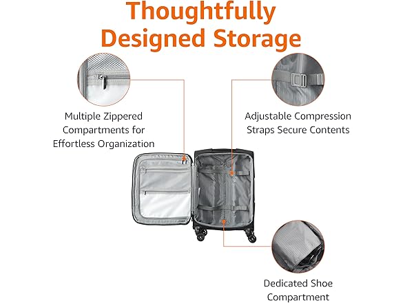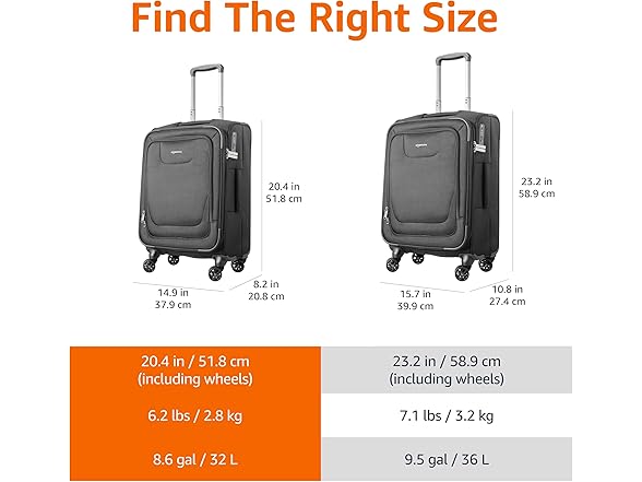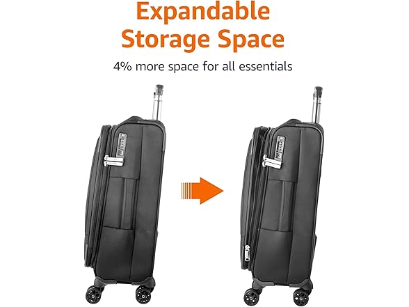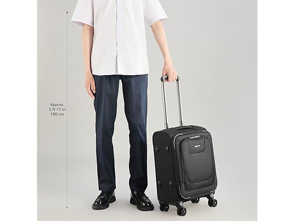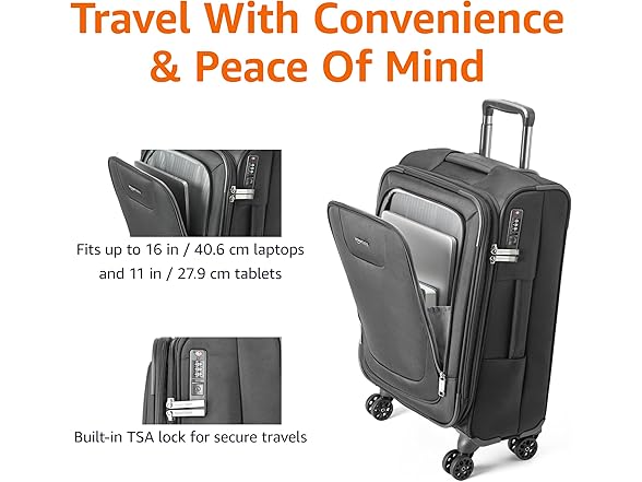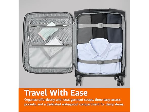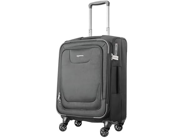 Amazon Basics 17" Carry On Luggage, Softside Suitcase With TSA Lock, 8 Spinner Wheels, Front Exterior Pocket, 3 Interior Pockets For Dry and Damp Clothes/Towels Separately, Black