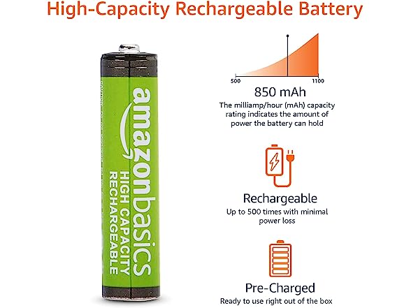 Amazon Basics 8-Pack AAA Rechargeable Batteries