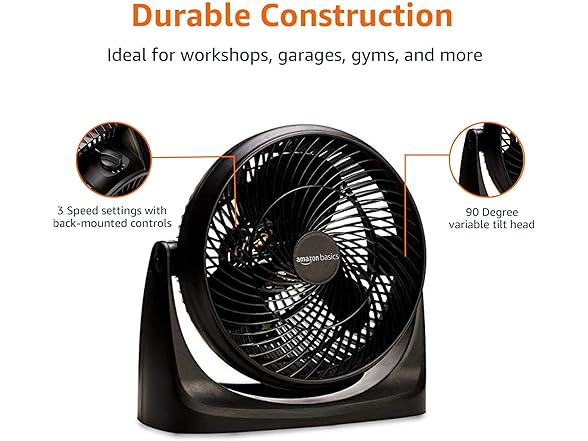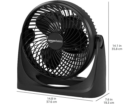Amazon Basics Air Circulator Fan, Desk Fan for Bedroom, Home and Office, With 90-Degree Tilt Head, 3 Speed Settings, Lightweight (4.2 LBS), 70 Watts, Black, 14.8"Wx7.6"Dx14.1"H