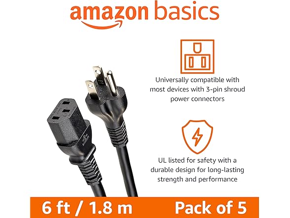 Amazon Basics Amazon Basics PC Power Cord, 6 feet, 5-Pack,