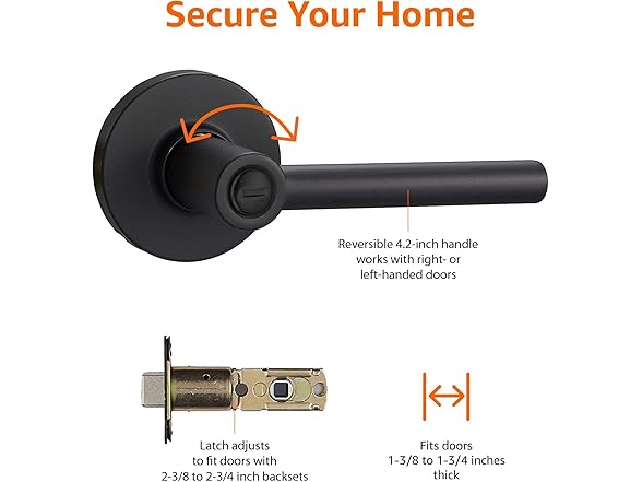 Amazon Basics Contemporary Madison Door Lever - Passage - Matte Black, 1-Pack