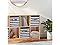 Amazon Basics Cube Organizer Storage Bins Handles, Collapsible Fabric, Pack of 6, 10.5"x10.5"x11", White/ Light Grey Stripe
