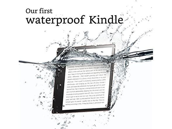 - The first waterproof (IPX8) Kindle so you are free to read in even more places.