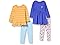 Amazon Essentials Girls' Long-Sleeve Outfit Set, Pack of 4, Blue/Sky Blue/White Floral/Yellow Stripe, Medium