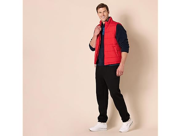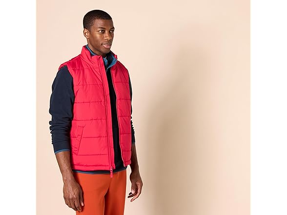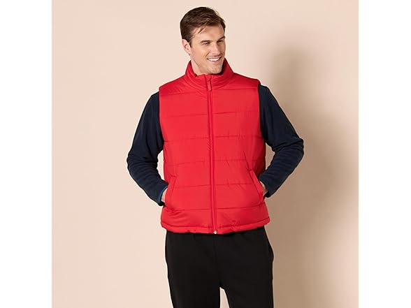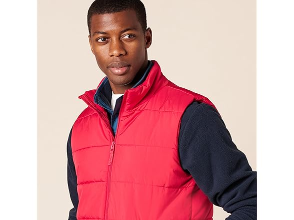 Amazon Essentials Men's Midweight Fleece-Lined Insulated Puffer Vest, Red, Large
