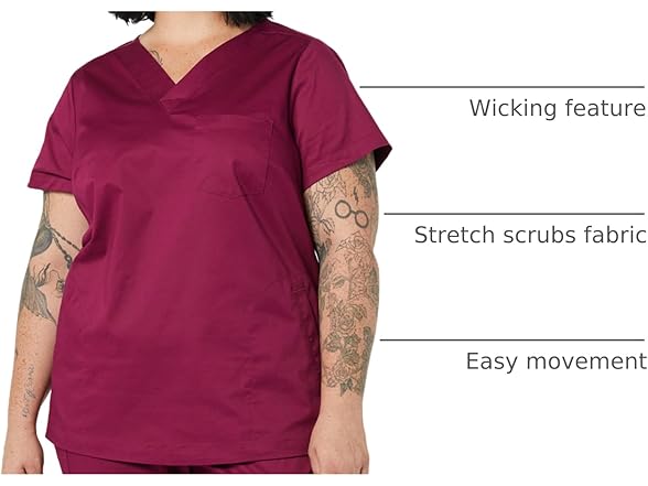 Amazon Essentials Women's Classic Fit V-Neck Short Sleeve Scrub Top (Available in Plus Size), Plum, 4X
