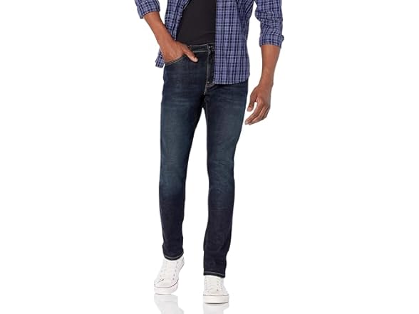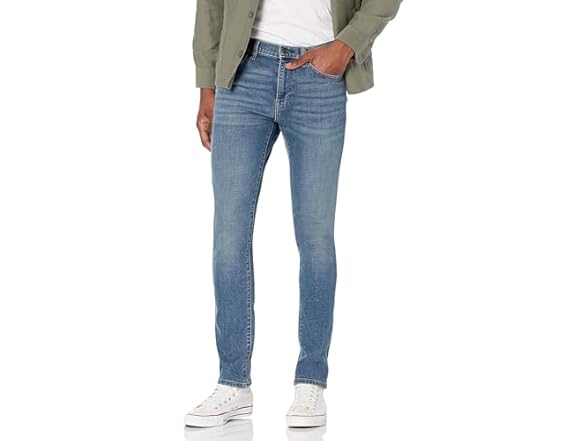 An Amazon brand - These classic 5-pocket skinny-fit jeans are crafted with a bit of stretch for additional comfort and to help maintain their shape