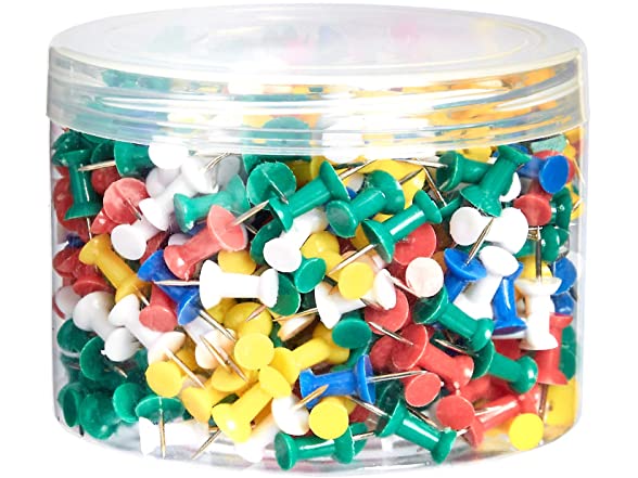 AmazonBasics Push Pins Tacks, Assorted Colors, Steel Point, 600-Pack