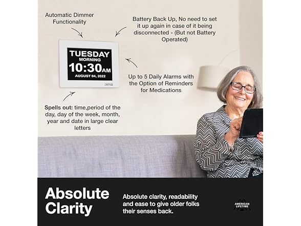 American Lifetime NA 8 InchXL Day Clock - Battery Backup (Open Box)