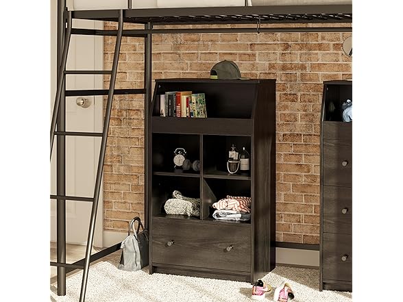 Ameriwood Home The Loft 1 Drawer Storage Tower, Black Oak