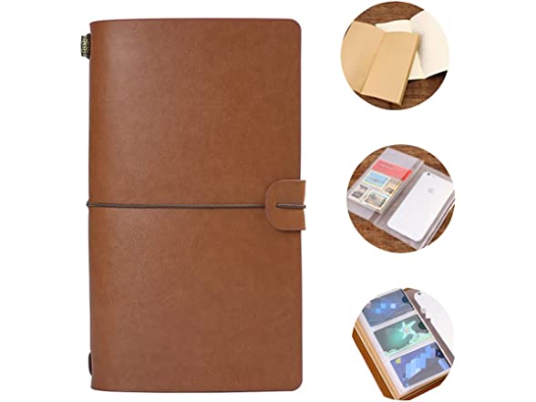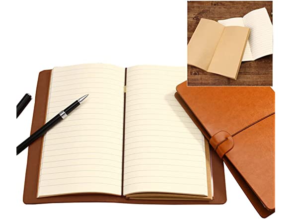 PU Leather Travel Notebook Refillable Journals Lined Paper A6 Diary Planner Writing Notepad Pocket Note Book for Men & Women,Brown